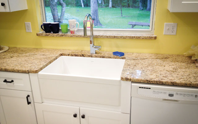 Apart from bathrooms and sinks, our team also works with contractors on kitchen remodeling projects. This client in particular wanted a new sink and modern faucet to accompany their brand new kitchen. Before beginning the project, our team worked with the client to see which fixtures were being installed and established the timeline for completion.